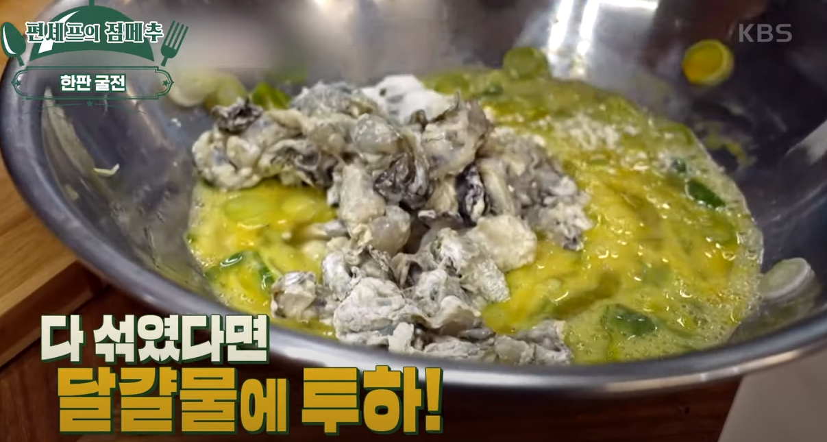 겨울 제철 음식 중 단연 으뜸은 굴이죠. 특히 굴은 "바다의 우유"라 불릴 만큼 영양소가 풍부한데요. 오늘은 KBS의 인기 요리 프로그램 편스토랑에서 소개된 배우 류수영 씨의 특별한 레시피, 바로 한판굴전을 함께 만들어 볼 거예요.